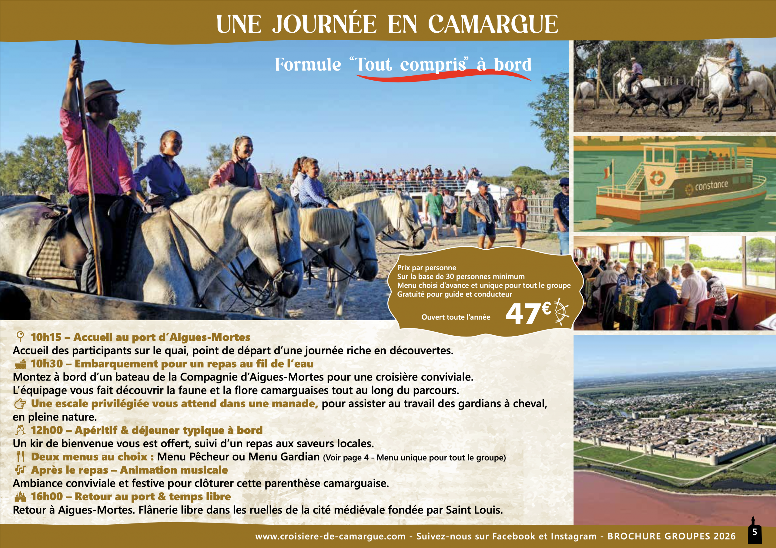 47€ (Adulte) – (prix par personne sur la base de 30 personnes minimum)