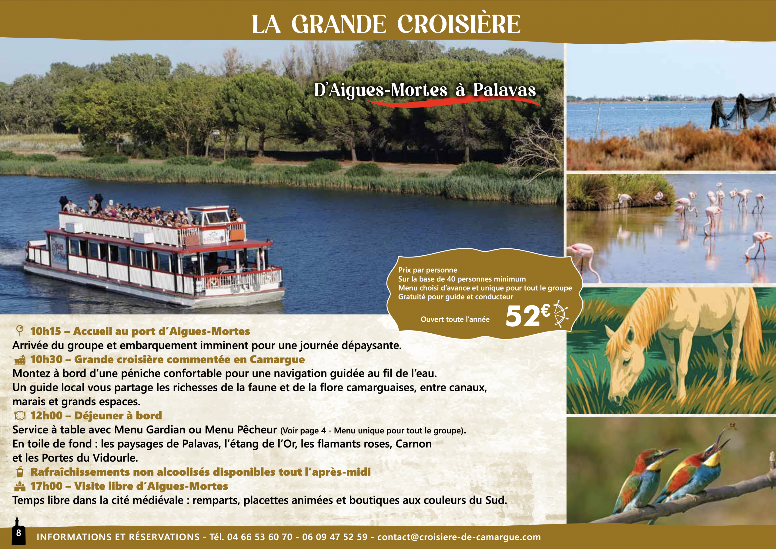52€ (Adulte) – (prix par personne sur la base de 40 personnes minimum)